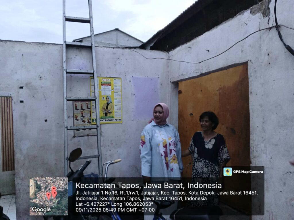Depok, Anggota Komisi D DPRD Kota Depok, Fraksi Partai Golkar FANNY FATWATI PUTRI, S.H., M.Ikom meninjau pelaksanaan program renovasi BSPS Bantuan Stimulan Perumahan Swadaya milik Pemerintah diKelurahan Jatijajar Kota Depok, Sabtu (8/11/2025).
