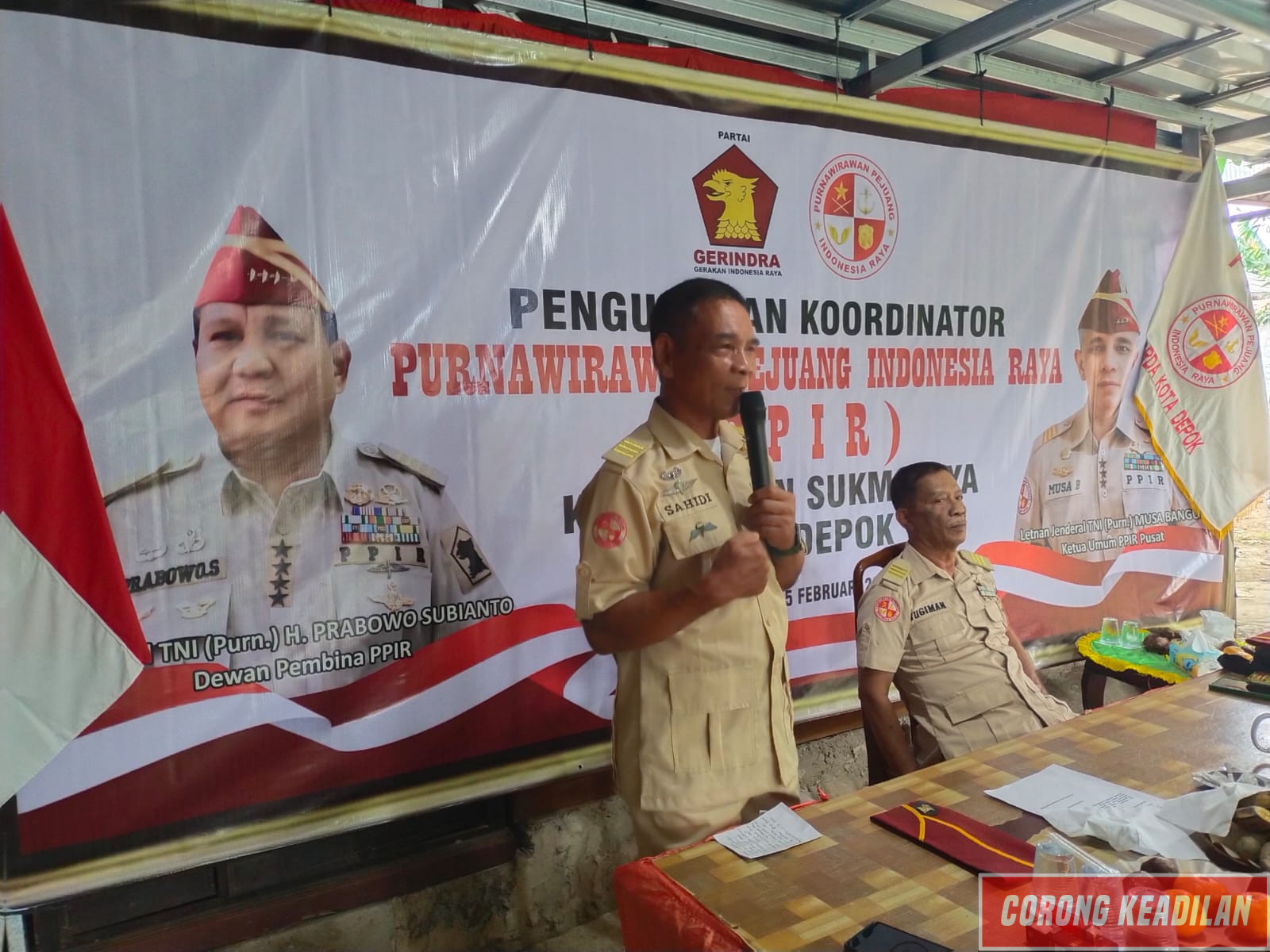Corongkeadilan82.com – Depok, Pengukuhan PPIR Koordinator Kecamatan Sukmajaya, Kota DepokPurnawirawan Pejuang Indonesia Raya (PPIR) 18 tahun sudah berdiri merupakan organisasi sayap dari Partai Gerindra, dalam setiap kegiatannya terus menggalakkan kegiatan dijajarannya. Ketua Koordinator Daerah PPIR Kota Depok, Letnan Kolonel TNI (Purn) Sahidi, mengukuhkan kepengurusan PPIR Kordinator Kecamatan Sukmajaya Depok, yang akan dipimpin Suparman yang dilaksanakan di Cilodong pada Minggu (15/2).